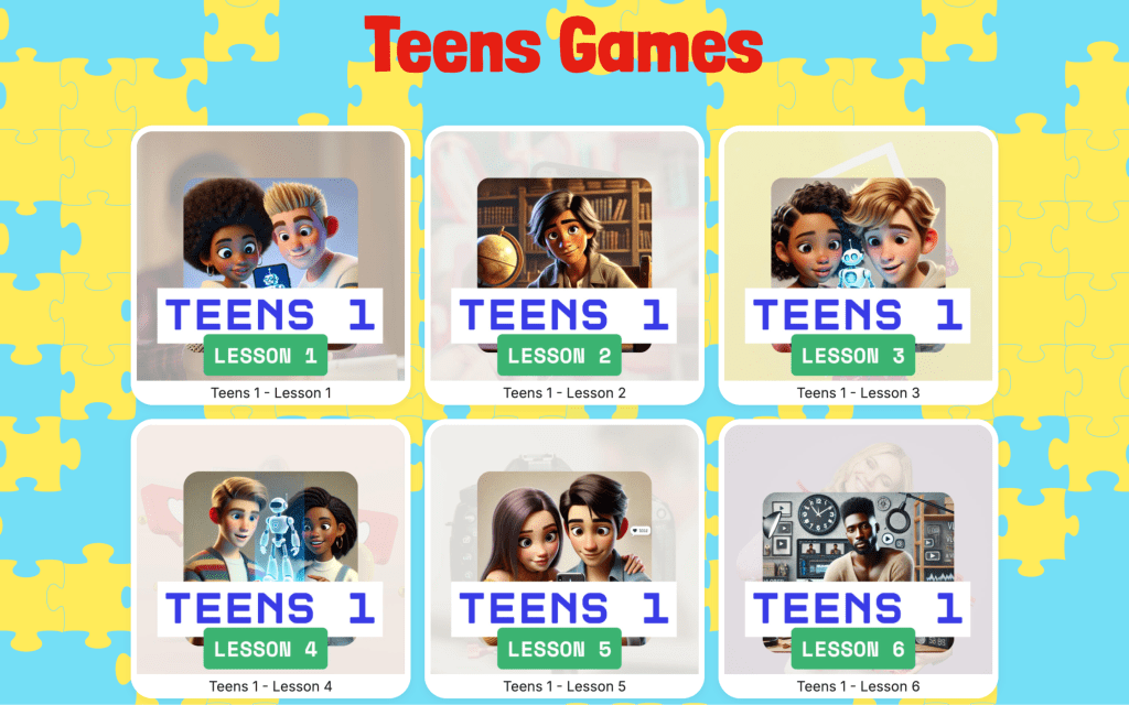 As atividades seguem os níveis e temas dos materiais oficiais (Littles, Kiddies e Teens), garantindo alinhamento pedagógico e continuidade no processo de aprendizagem.